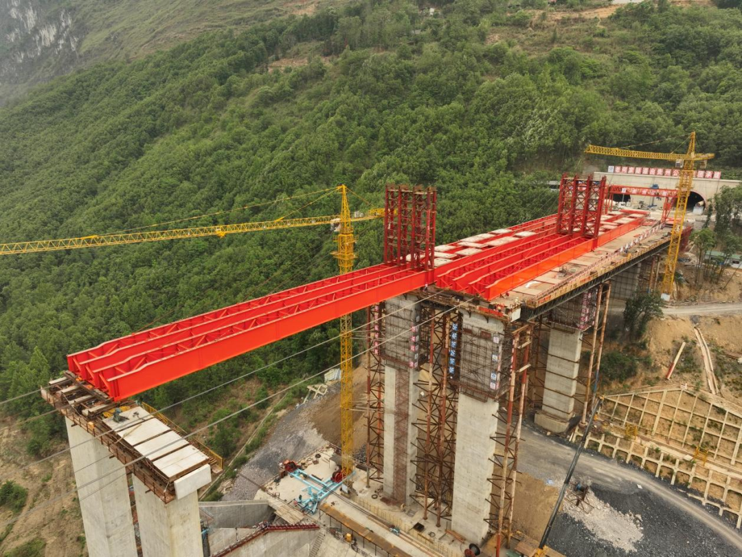 牂牁江大桥晴隆岸引桥首跨钢梁顶推顺利完成,,,,,,,,开创了国内山区大跨径钢梁“无导梁拖拉式顶推”施工的先例,,,,,,,,为今后同类型桥梁建设提供了新的技术参考和示范。。。。。。。。